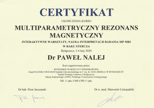 - Bydgoskich Warsztatów Endoskopowych, Sekcji Endourologii i ESWL PTU (Multiparametryczny Rezonans Magnetyczny