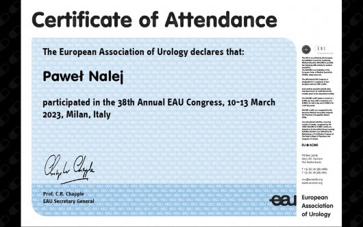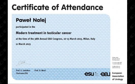 - Kursów Europejskiego Towarzystwa Urologicznego, m. in. Modern treatment in testicular cancer