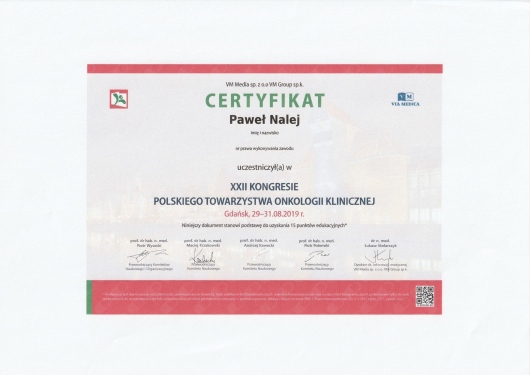 Na co dzień pracuję w Klinice Nowotworów Układu Moczowego Narodowego Instytutu Onkologii – Państwowego Instytutu Badawczego im. M. Curie-Skłodowskiej w Warszawie, gdzie stale podnoszę swoje kwalifikacje zawodowe oraz realizuję pasję leczenia i pomagania ludziom.